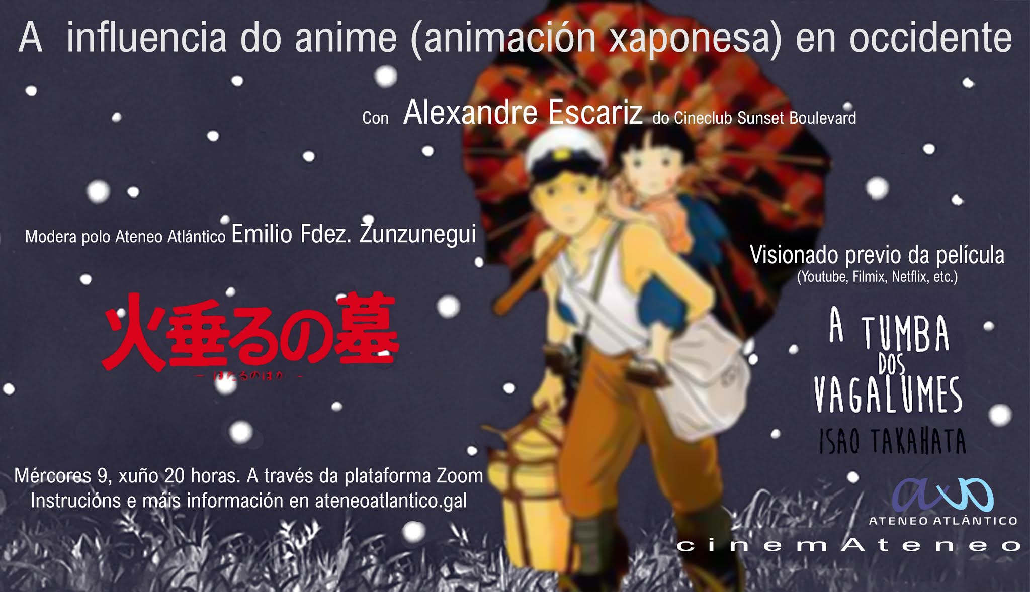 Nesta ocasión estará con nós Alexandre Escariz, do Cineclub Sunset Bulevard, para falar da influencia do Anime (animación xaponesa) en Occidente.