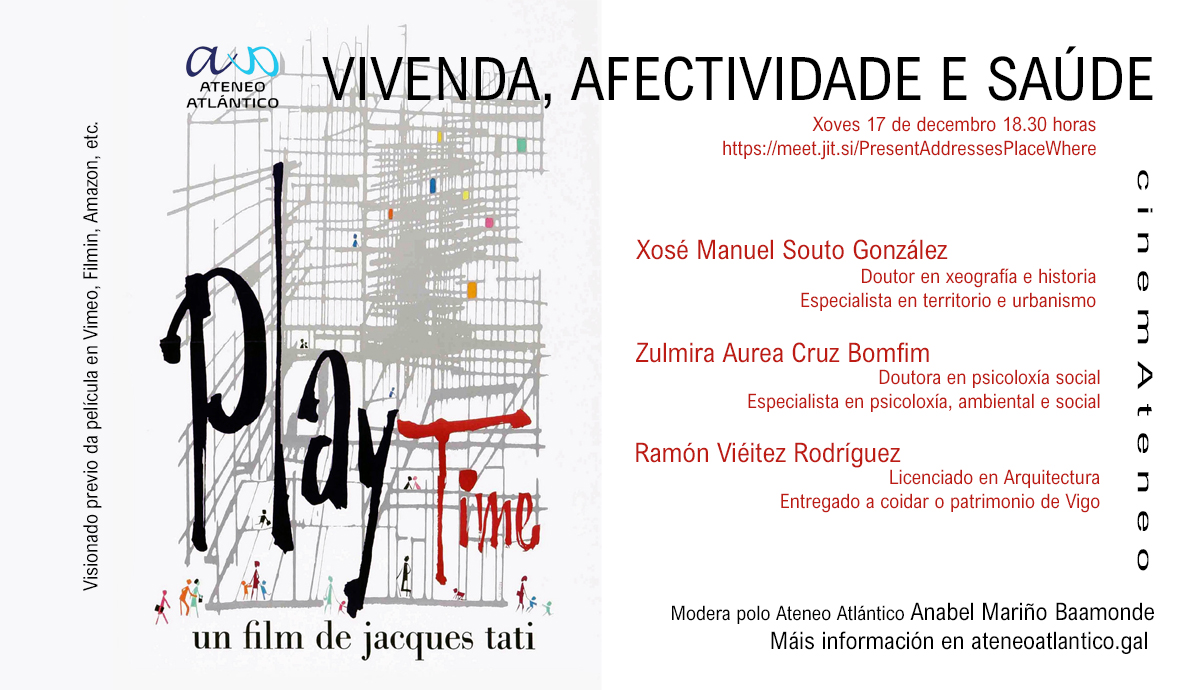 especialista en psicoloxía, ambiental e social. Ramón Viéitez Rodríguez, arquitecto entregado ao coidado do patrimonio arquitectónico de Vigo. Actuará como moderadora, en representación do Ateneo Atlántico, Anabel