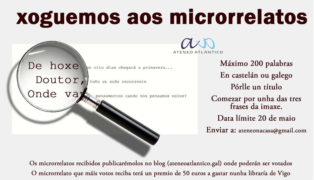 - Os microrrelatos enviaranse ao enderezo electrónico do AteneoNaCasa (ateneonacasa@gmail.com)