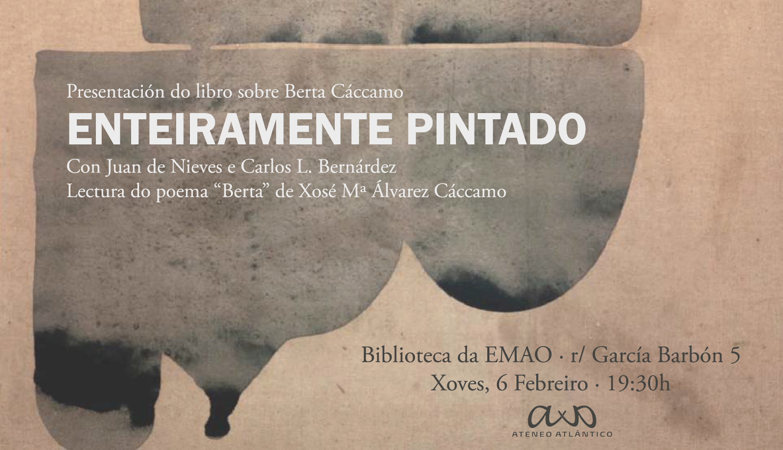 Na tesitura dunha homenaxe do Ateneo Atlántico a Berta Cáccamo, aproveitamos o momento para realizala a través da presentación do libro Enteiramente Pintado (Chan da Pólvora, 2019).