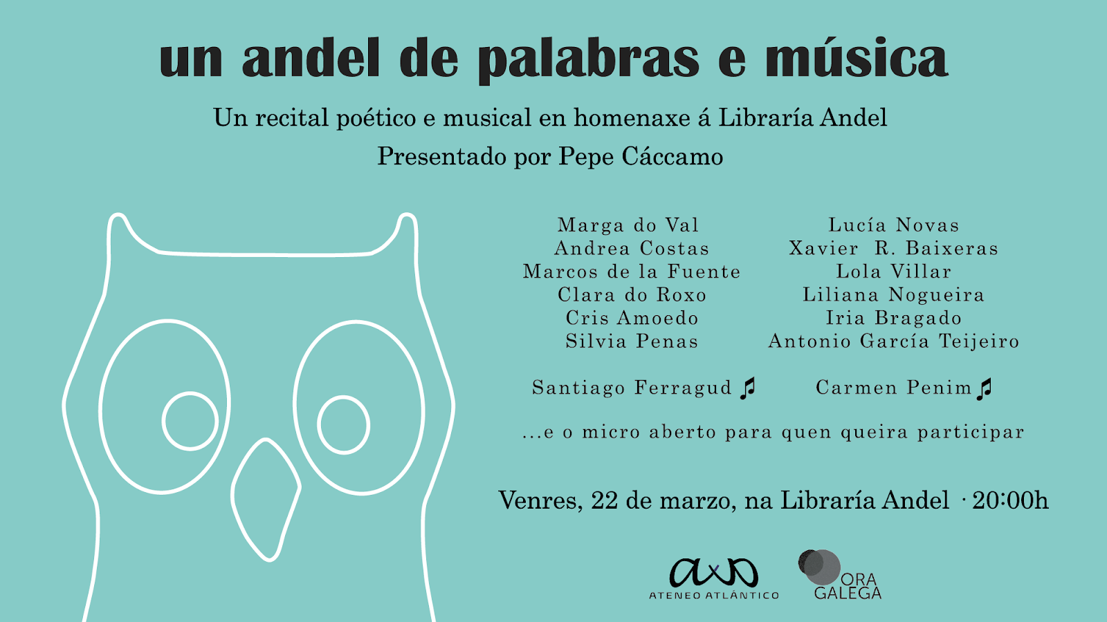 Como seguramente sabedes, a Libraría Andel, especializada no libro galego e portugués, e tras moitos anos de servicio, vai pechar ás súas portas. Durante máis de vinte anos, ben na rúa Pintor Lugrís, coma agora na rúa das Camelias, esta libraría foi un lugar de encontro e celebración da lingua galega.